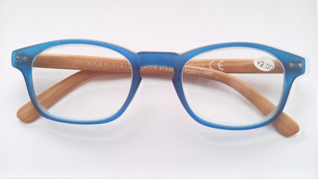 The Closevision Winston +2.00 by Magnivision is a neat medium sized quadra shape for both ladies and Gents. designed for precision reading with a magnifying strength of +2.00. Featuring a mat blue colour with wood effect sides and polycarbonate lens technology, these glasses are perfect for focusing on close-up text. The sprung temple joints offer a comfortable and stylish fit for adults of any gender.
